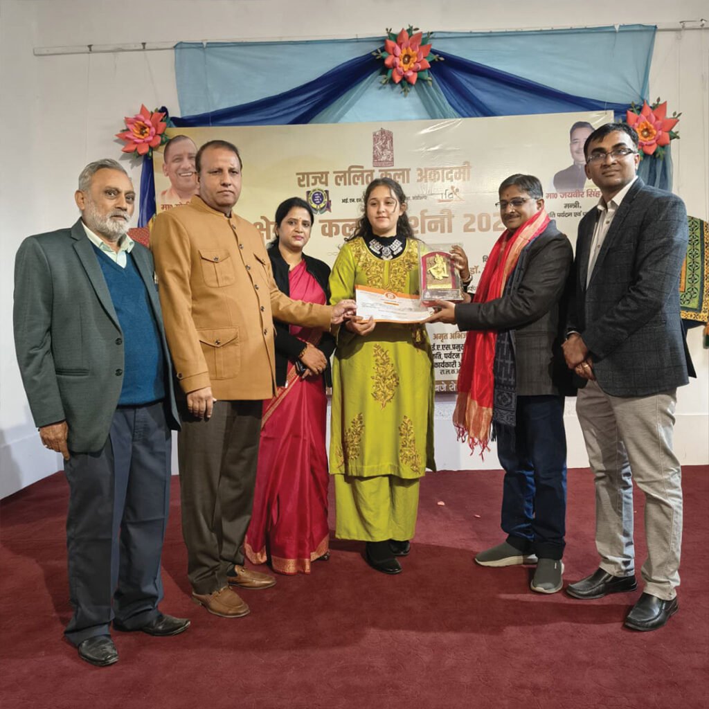 our talented student Megha Dixit was awarded a ₹15,000 cash prize by Rajya Lalit Kala Akademi, Lucknow in recognition of her outstanding artistic achievement.