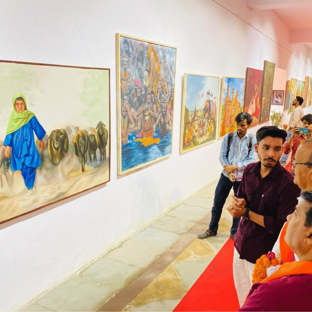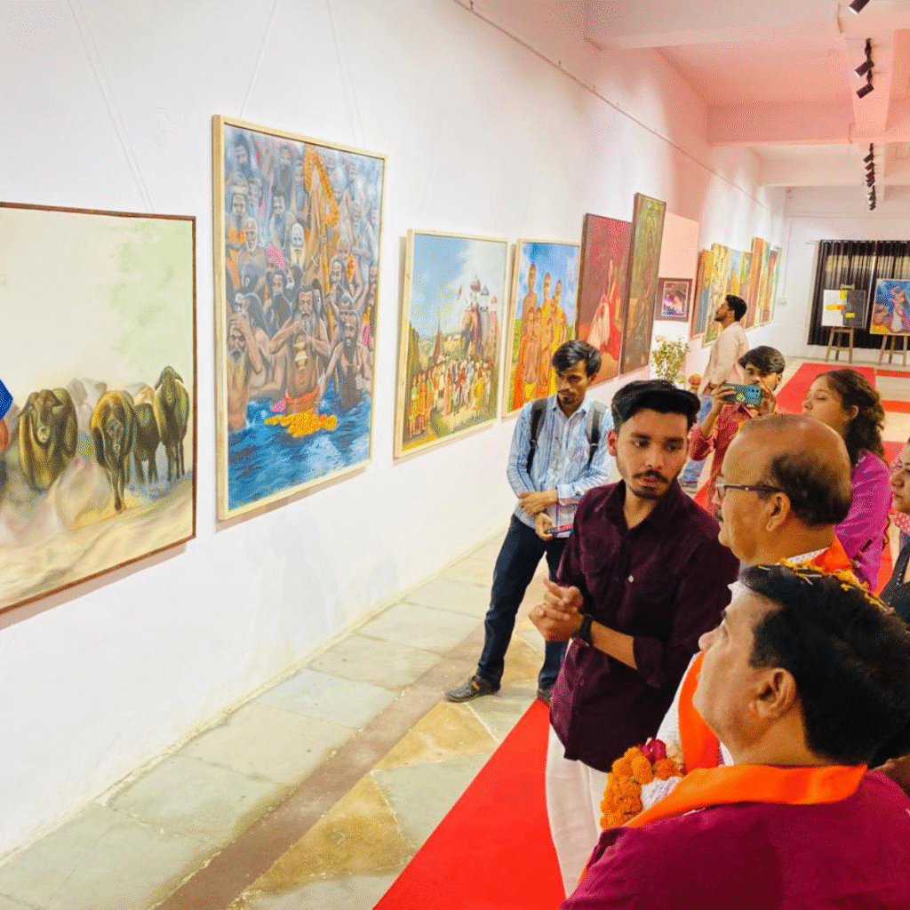 The exhibition commenced on 11th March 2026 with an inspiring opening ceremony graced by esteemed chief guests Dr. Manju Shiwach, Swami Aarogyanath Ji, and renowned artist Mr. Shambhunath Goswami Ji. Their presence added immense value to the occasion, motivating both artists and audiences through their encouraging words and appreciation. The exhibition showcased a diverse and impressive collection of artworks reflecting unique perspectives, techniques, and creative themes, receiving overwhelming appreciation from visitors and dignitaries alike.