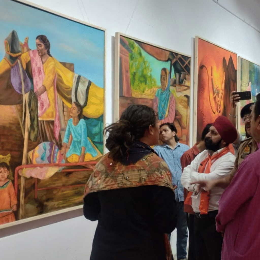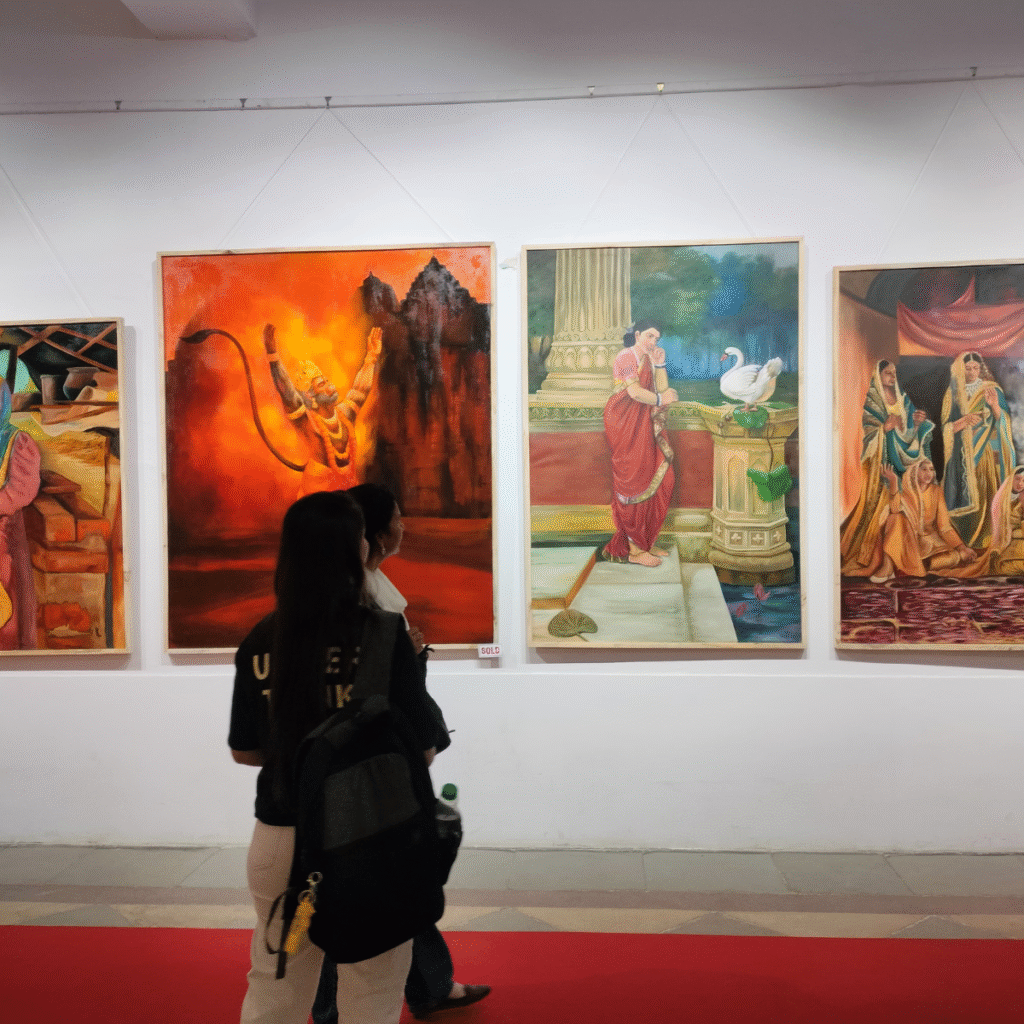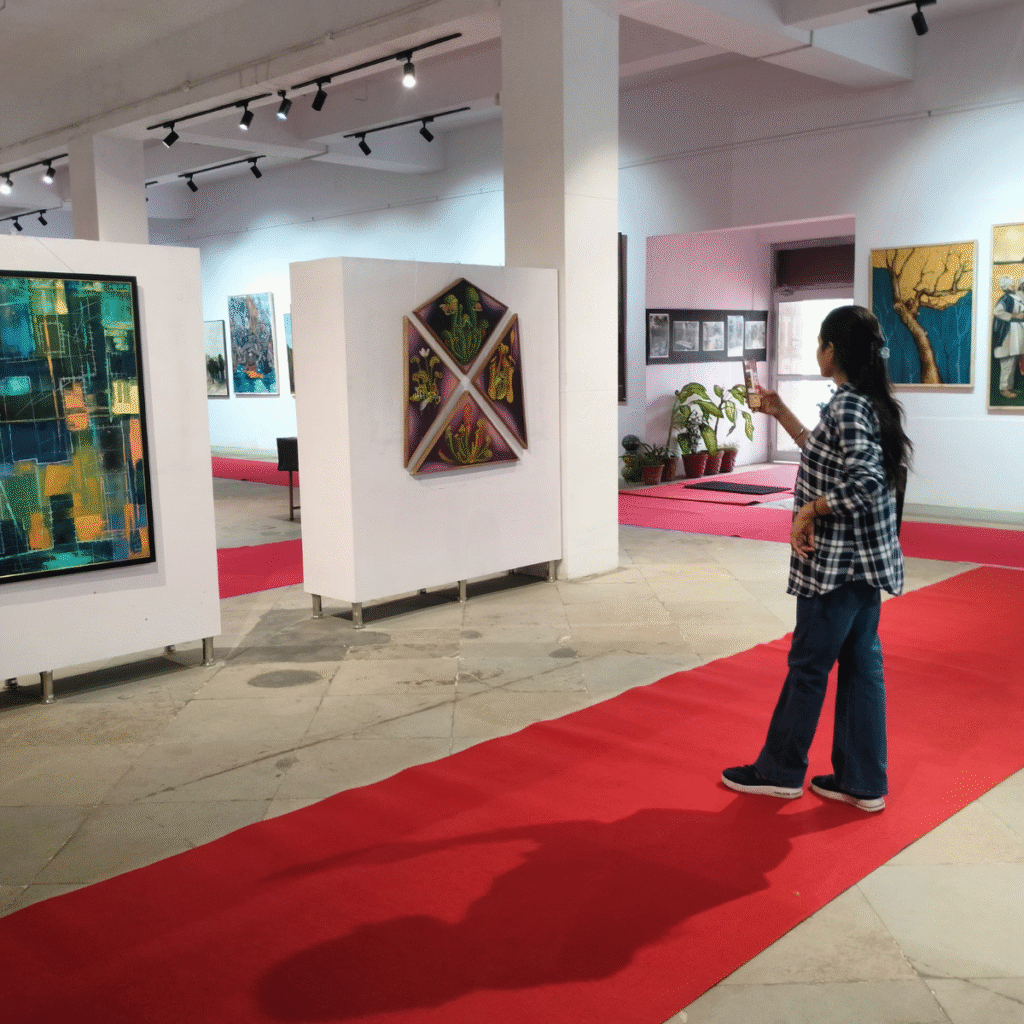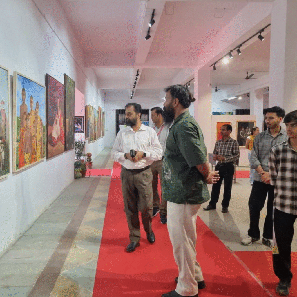 The exhibition was brought to life by the talented members of Artivism Collectives—Aditya, Anmol, Bhoomi, Pallavi, Pooja, Tia, Ayushi, Poonam, Himanshi, Shreyas, and Megha Dixit—each contributing uniquely to create a cohesive yet diverse artistic narrative that truly embodied the spirit of the exhibition. The group was guided and mentored by Mr. Prashant Jha, whose continuous support and direction played a vital role in shaping the exhibition into a remarkable success. Special thanks are extended to the Indian Industries Association for their constant encouragement and valuable contribution, which greatly empowered the artists and played an important role in making this exhibition a grand success.