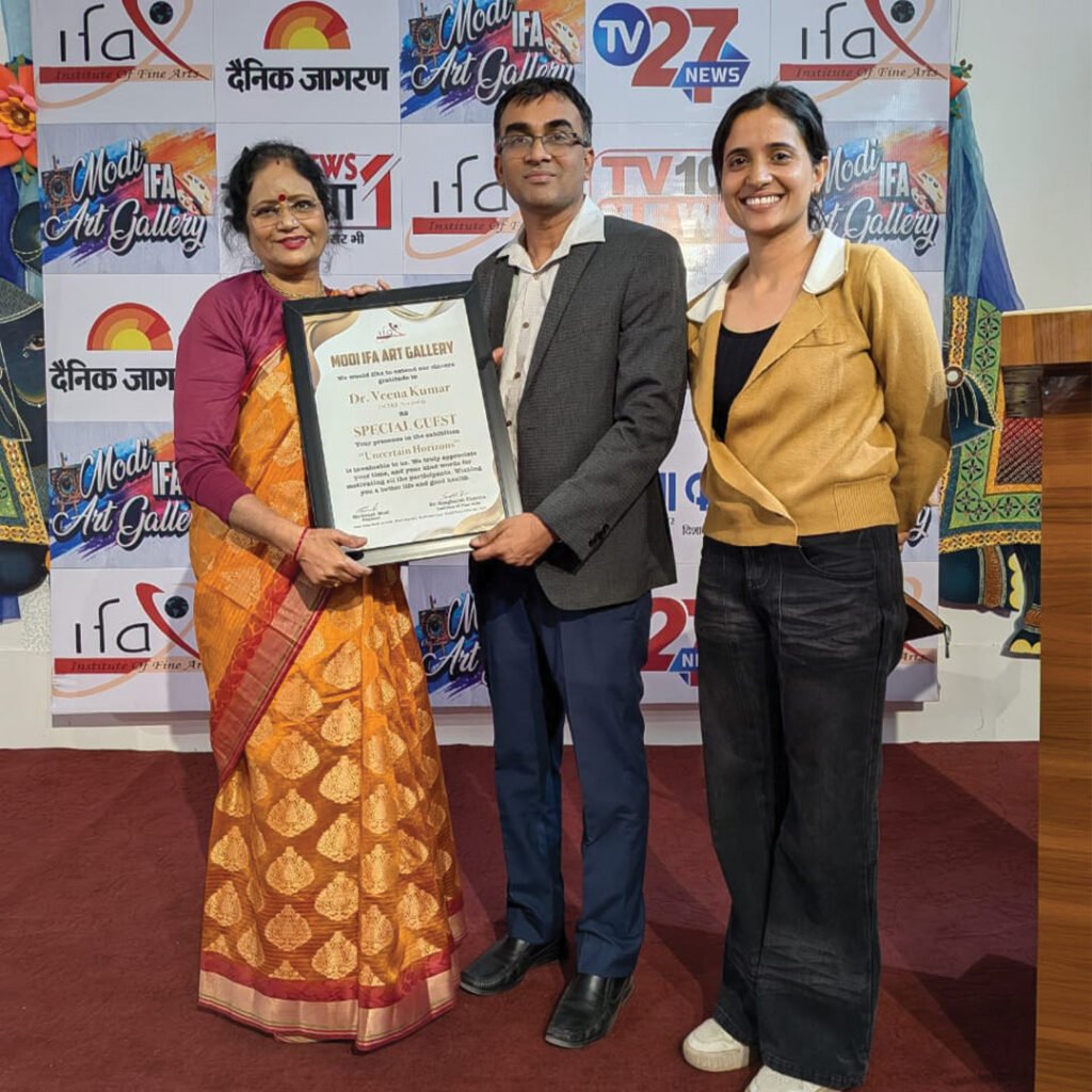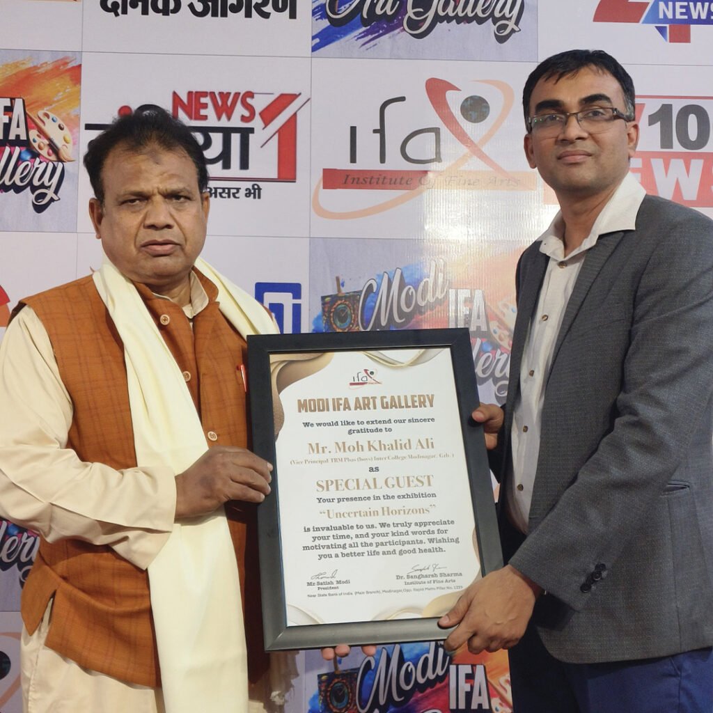 The exhibition opened with great enthusiasm at the Institute of Fine Arts, Modinagar, where artworks transformed the gallery into a space of questions, reflections, and discoveries. Each piece invited viewers to explore the delicate balance between what is seen and what is felt — between certainty and the unknown.